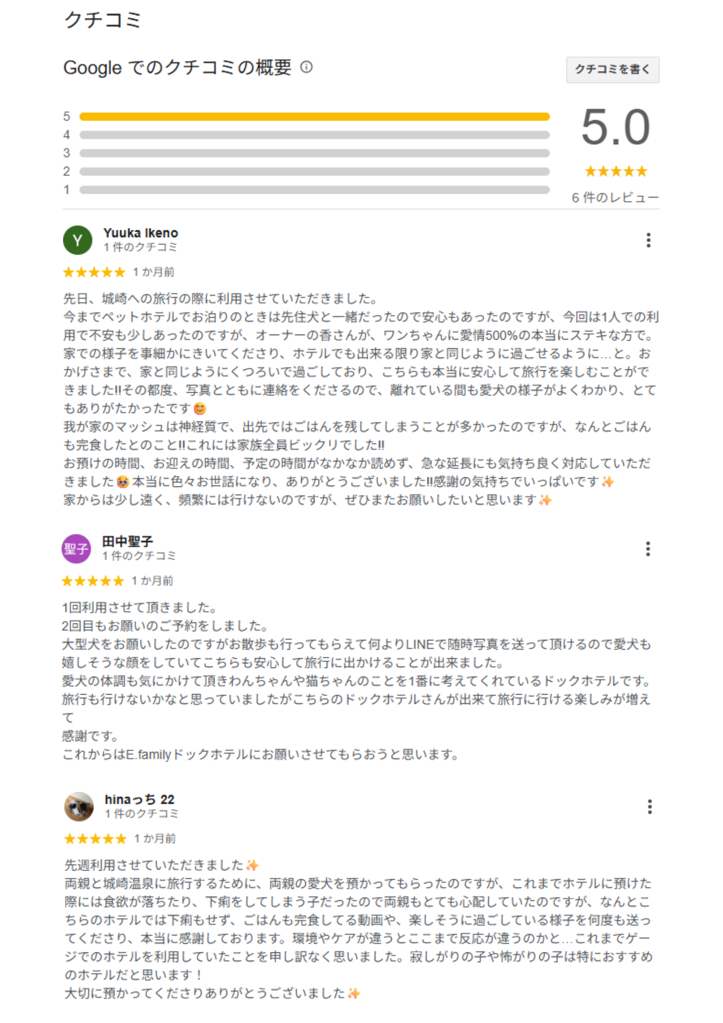 私自身、ご宿泊前には丁寧なヒアリングを行い、ワンちゃんの性格や生活リズムに合わせたプランをご用意しています。おうちにいる時と同じように過ごしてもらうことを大切にしており、その結果、お客様からも大変ありがたいお声をいただいおります。
